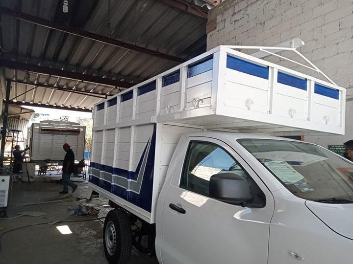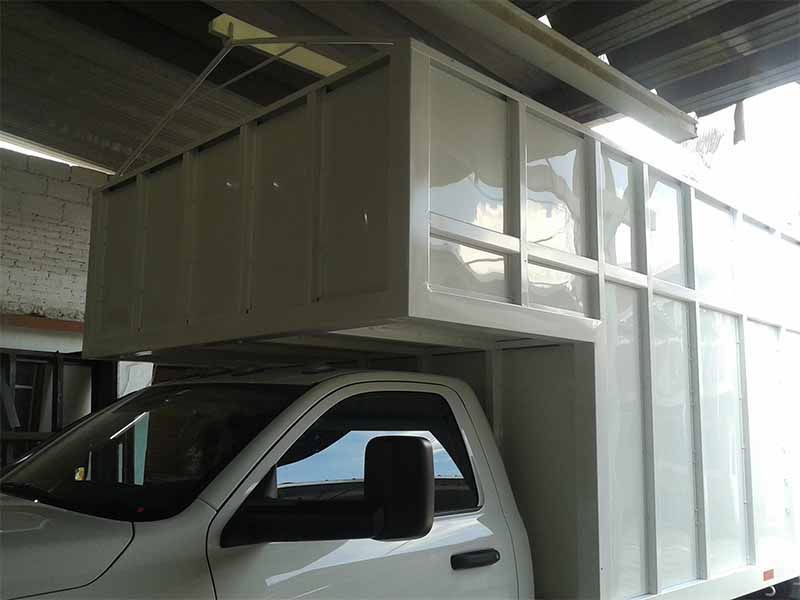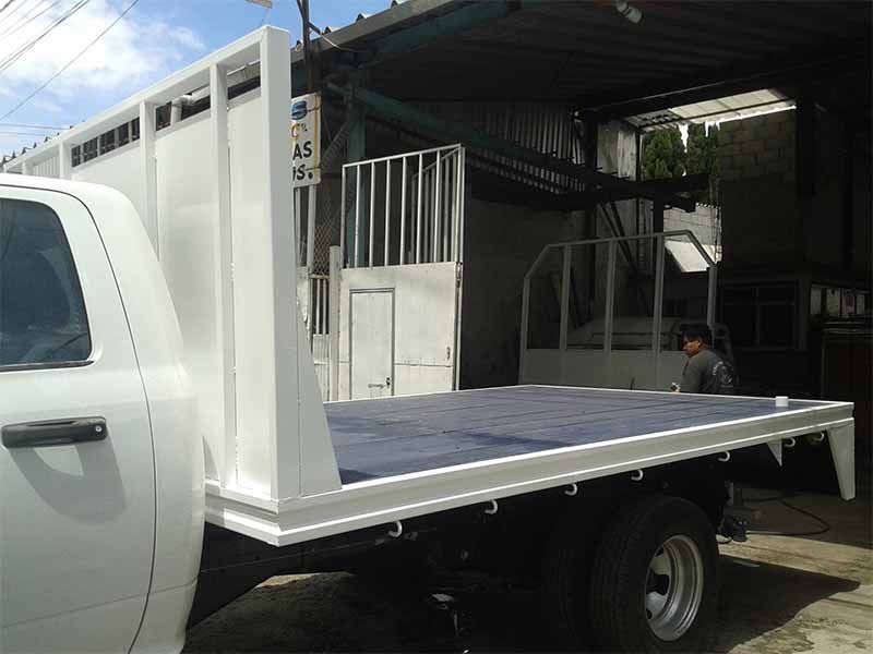 Es un tipo de carrocerías que se utiliza en casas de material para la construcción, sirven para trasladar varilla, ladrillo, cemento, entre otros.